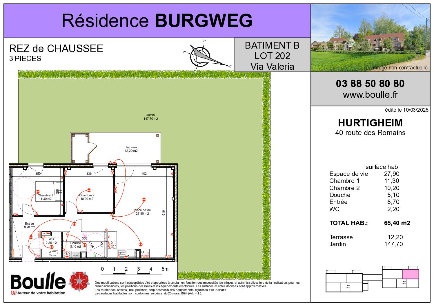 La Résidence du Burgweg, harmonieusement intégrée à son environnement, est une petite copropriété à taille humaine, composée de 18 appartements lumineux, du 2 au 4 pièces, conçus pour allier esthétisme, confort et praticité. La résidence dispose de places extérieures collectives ainsi que de garages individuels disponibles, offrant ainsi une solution de stationnement adaptée aux besoins de chacun.