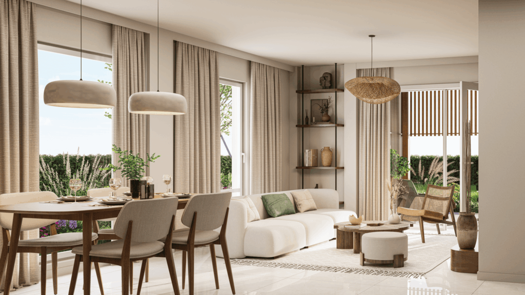 Au cœur d’un parc paysager privé d’un hectare, cette nouvelle résidence s’inscrit dans un environnement rare où la nature a été préservée avec soin. Les arbres existants, véritables gardiens du lieu, entourent les bâtiments et offrent une atmosphère intime et apaisante, loin de toute circulation automobile. Ici, le quotidien s’épanouit au rythme des saisons, dans un décor végétal exceptionnel où le calme règne en maître.